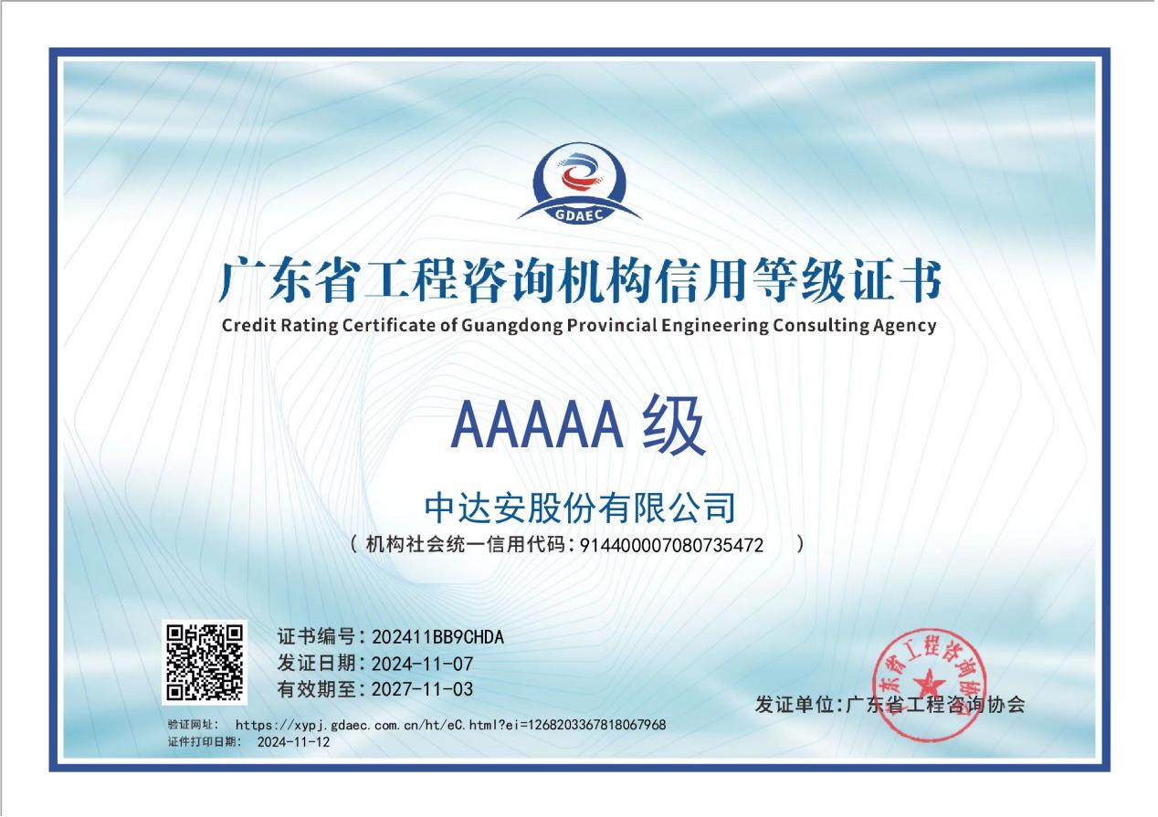 卓越的項(xiàng)目管理技術(shù),先進(jìn)的信息化建設(shè)系統(tǒng),使我們的產(chǎn)品,以其科學(xué)合理的構(gòu)思,嚴(yán)格到位的管控,贏得客戶的高度認(rèn)同,收獲了許多榮譽(yù)和權(quán)威認(rèn)可:中達(dá)安營業(yè)收入自2012年起一直在全國同行中名列前茅,多次躋身前十強(qiáng);并獲得國家高新技術(shù)企業(yè)、國家工商總局“守合同重信用”企業(yè)、廣東省誠信示范企業(yè)、廣州市總部企業(yè)、廣州市納稅信用A級(jí)企業(yè)等多項(xiàng)榮譽(yù);成為中國招標(biāo)投標(biāo)協(xié)會(huì)理事單位、中國建設(shè)監(jiān)理協(xié)會(huì)常務(wù)理事單位、中國工程咨詢協(xié)會(huì)理事單位、廣東省通信行業(yè)協(xié)會(huì)常務(wù)理事單位、廣東省建設(shè)監(jiān)理協(xié)會(huì)常務(wù)理事單位、廣東省工程咨詢協(xié)會(huì)常務(wù)理事單位。