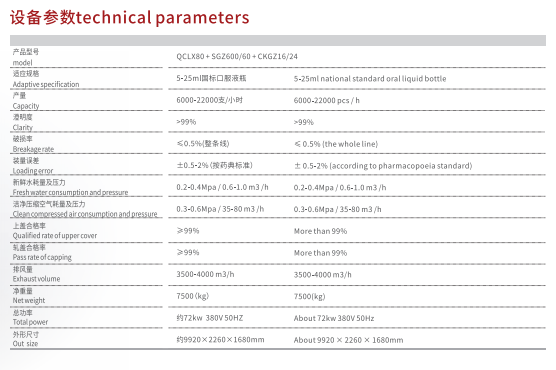 The linkage production line is composed of qclx series vertical ultrasonic bottle washing machine, SGZ series tunnel hot air circulation sterilization and drying machine, ckgz series filling and capping machine, etc. the linkage production line has simple and beautiful appearance, less floor space and convenient cleaning. It is suitable for the production of filling and capping of 5-25iml oral liquid bottles, It can complete the linkage operation of oral liquid bottle watering, ultrasonic cleaning, flushing, air flushing, drying, sterilization, cooling, filling, capping, capping and other process steps in drug production. The linkage line has advanced design concept, reasonable structure and stable performance, provides equipment and technical support for the aseptic production of drugs in pharmaceutical factories, and meets the relevant requirements of the current national drug production quality management code (GMP).